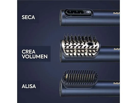 Secador – BaByliss Air Wand, Alisador y Styler, De cabello mojado a peinado perfecto, Con aire, 1600W, 123 km/h, 4 temperaturas, 3 velocidades, Azul
